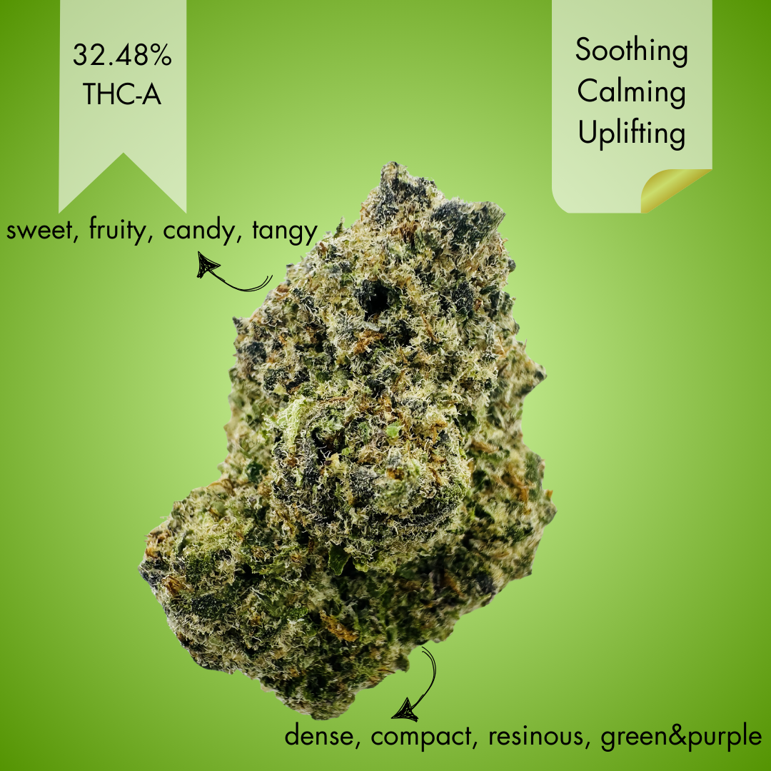Dense, Compact, Resinous, Green & Purple, Bright Orange Pistils